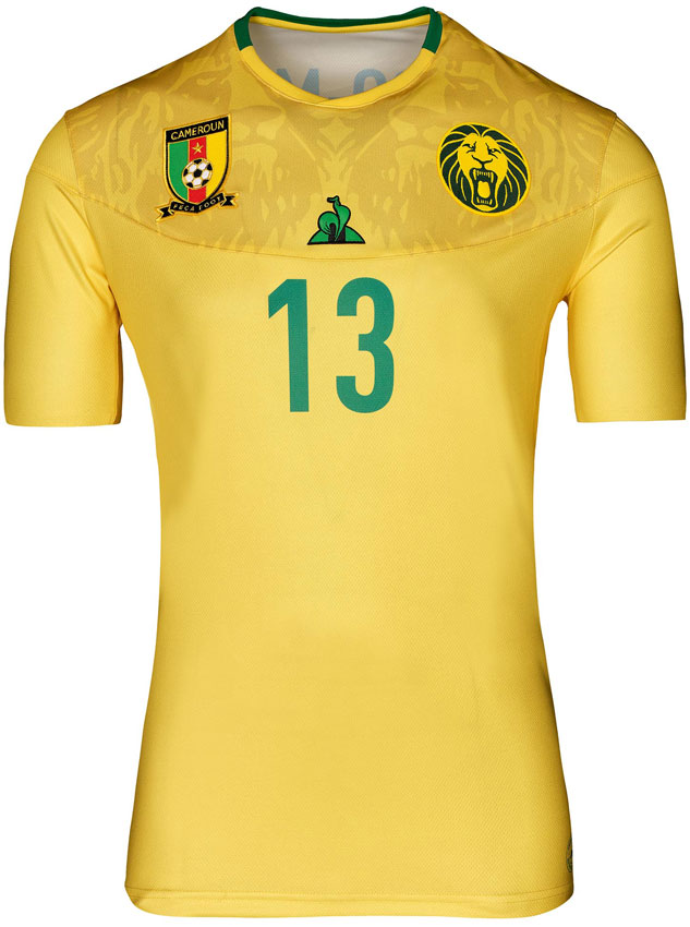 アウェイユニフォームはイエローを基調としたデザイン。ホーム、アウェイとも肩部分にはライオンの顔を透かしプリントが入る。