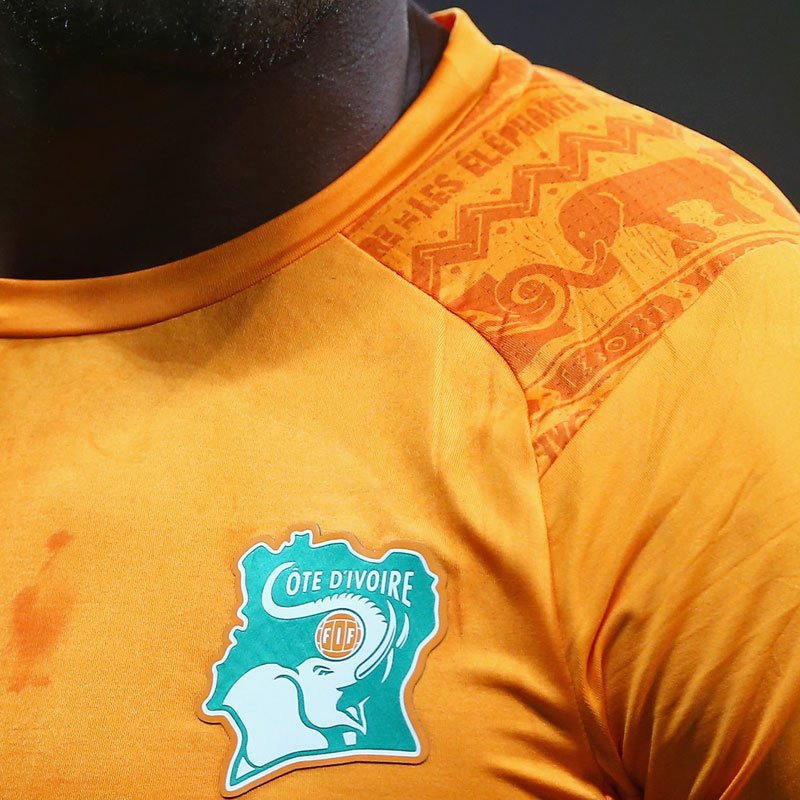 2014年ブラジルW杯で着用したユニフォーム。グループステージで日本とも対戦しているので、ご記憶の方も多いことだろう。民族模様柄に見える肩のグラフィックには、しっかりと象が描かれている。
