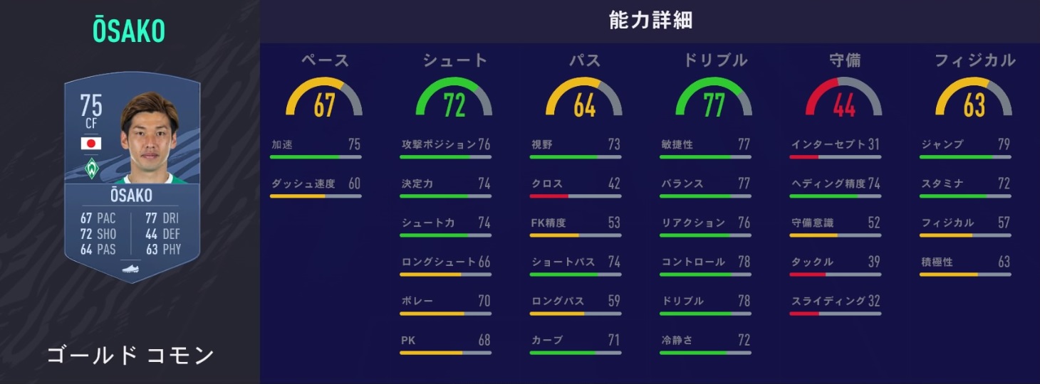 能力値:75 ポジション:CF