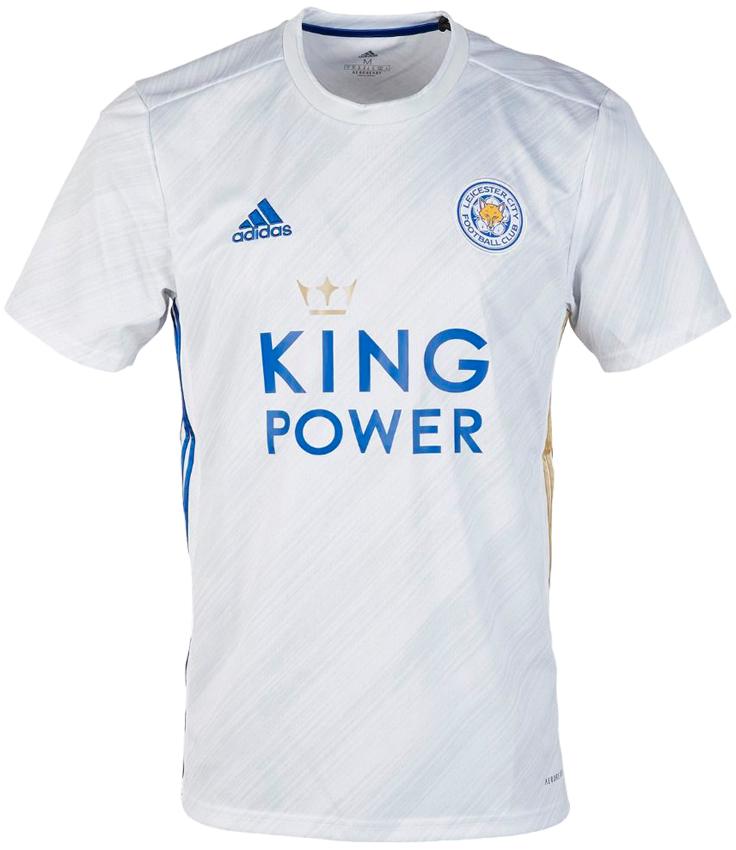 アウェイはホワイトを基調に、薄っすらと斜めストライプをあしらたデザイン。胸のスポンサーは「King Power」で継続する。