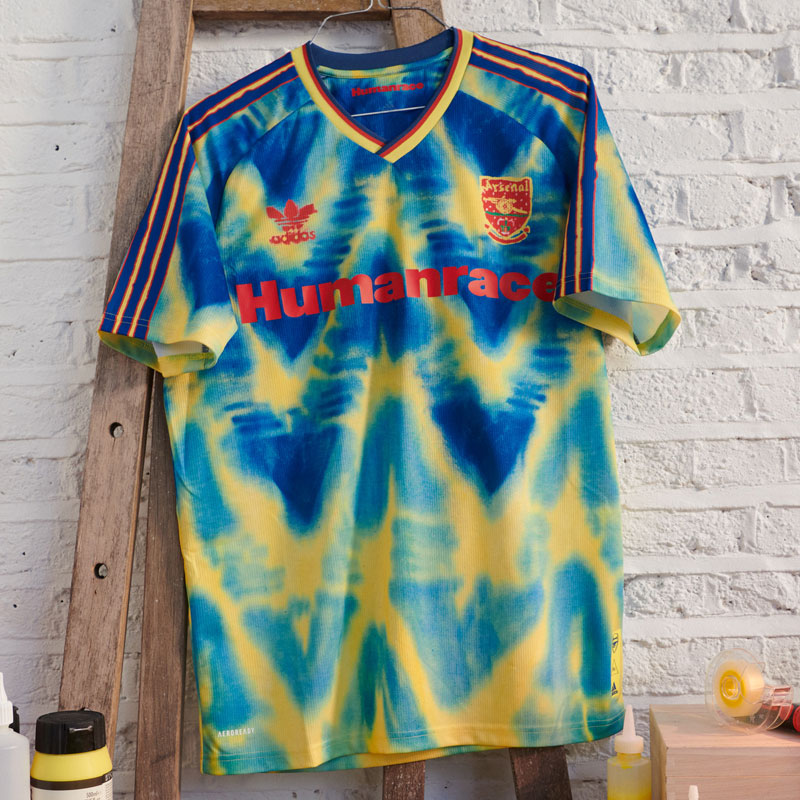 1991-93年に着用し、その見た目から「傷んだ(腐った)バナナ」と揶揄されるも人気を博したアウェイユニフォーム。それをベースに手書き風デザインで仕上げた。クラブのプライドとカルチャー、ストリートスタイルの融合から生まれた一着だ。
