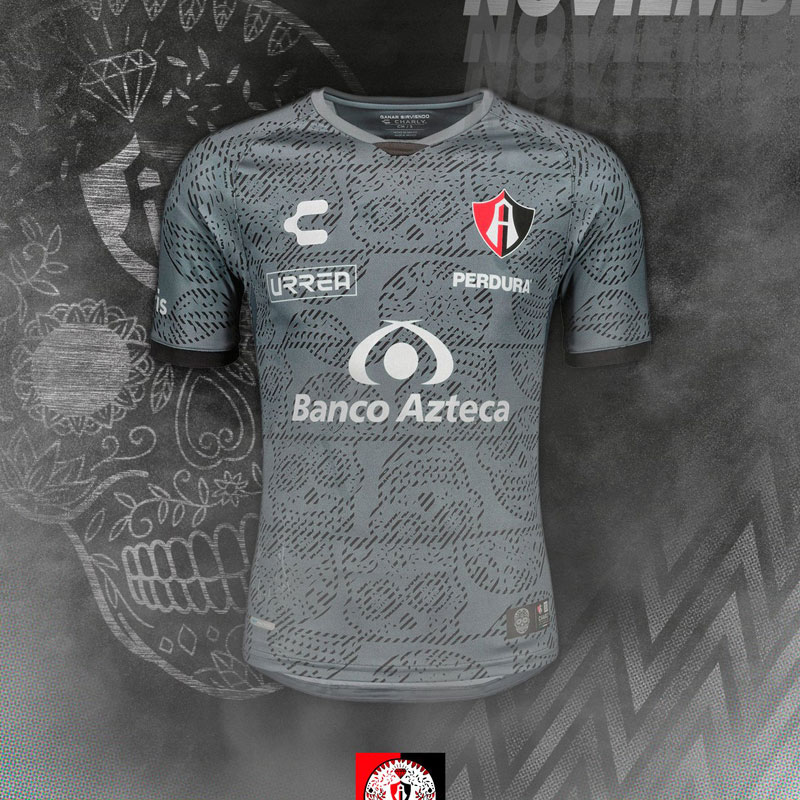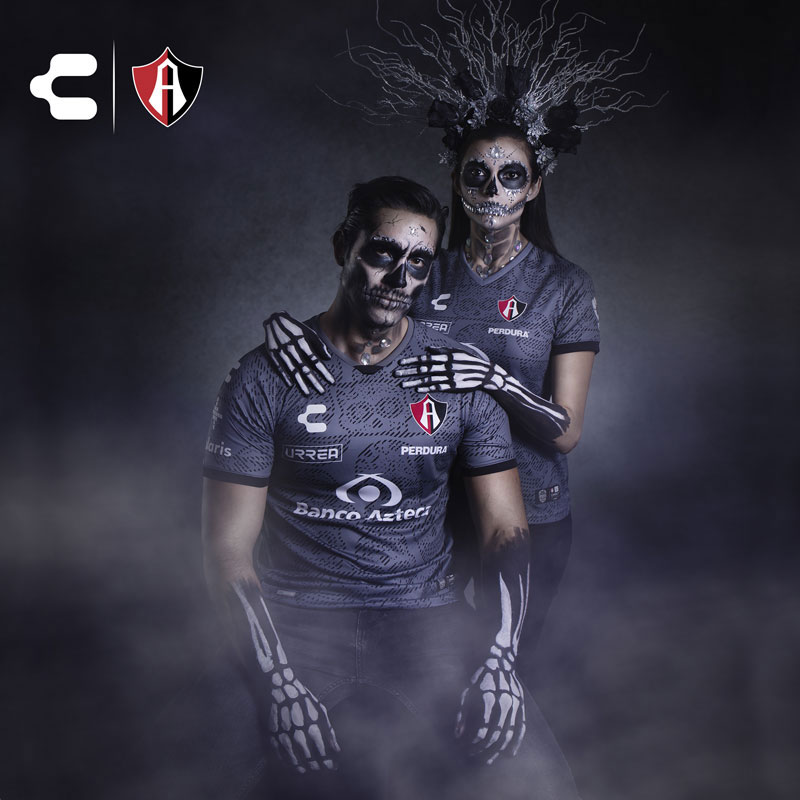 今回の5クラブで最も早くリリースとなったユニフォーム。死者の日にふさわしく、頭蓋骨をシャツ全体に落とし込む。