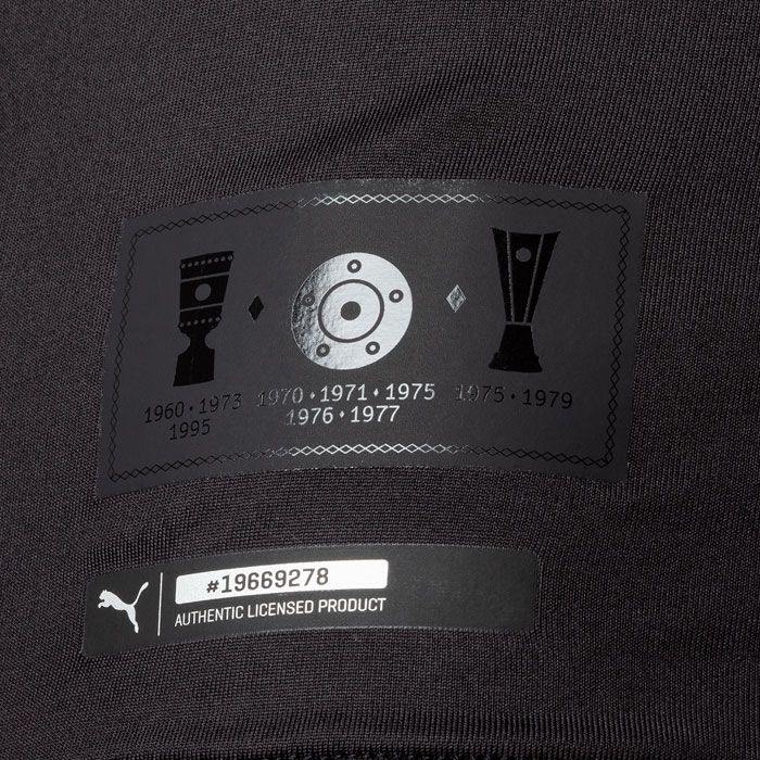 エンブレムとスポンサーロゴの他に、袖のリーグバッジまでブラックに。この徹底ぶりが素晴らしい。