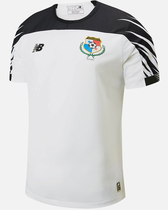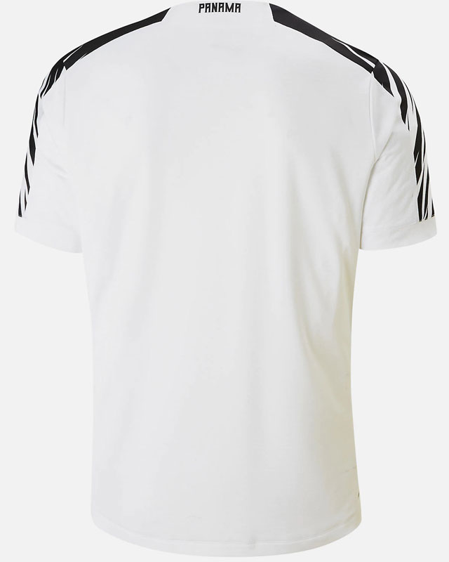 アウェイはホワイトを基調としたデザイン。袖にはパナマの国鳥であるハーピーイーグル(扇鷲)をイメージしたグラフィックを落とし込む。