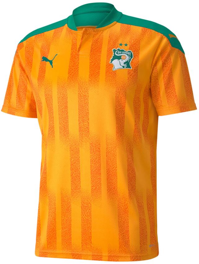 コートジボワールは、チームの愛称“Les Éléphants(象)”に触発されたデザイン。グラフィックは象の皮膚を表現している。