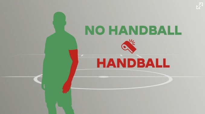 国際サッカー評議会によるハンドの最新規定では、「Tシャツ(の袖)ライン」を肩と腕を区別する場所としている。