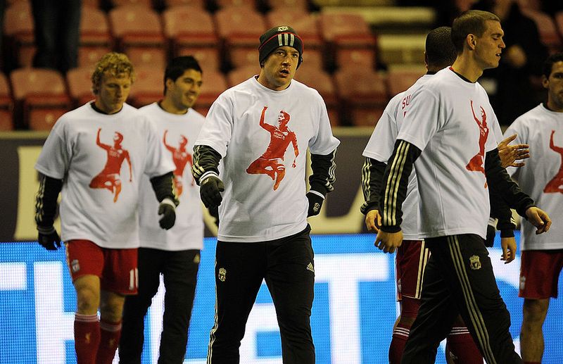 だが、リヴァプールはその処分が下る1日前に行われたウィガン・アスレティック戦のウォームアップでスアレスの顔が書かれたTシャツを着用し、公に支持を表明していた。