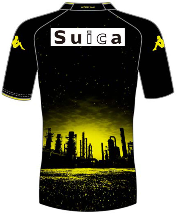 キットは「サマーナイトユニフォーム」と銘打たれ、夏季限定で使用。前面には輝くホームスタジアムの姿を、背面にはホームタウンを象徴する工業地帯を描いている。