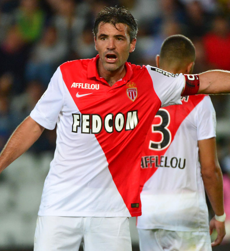 斜めに赤白半々のデザインのユニフォームを着るモナコ。この斜め2分割のデザインは故グレース・ケリー公妃がデザインし、1960年から使い続けている。