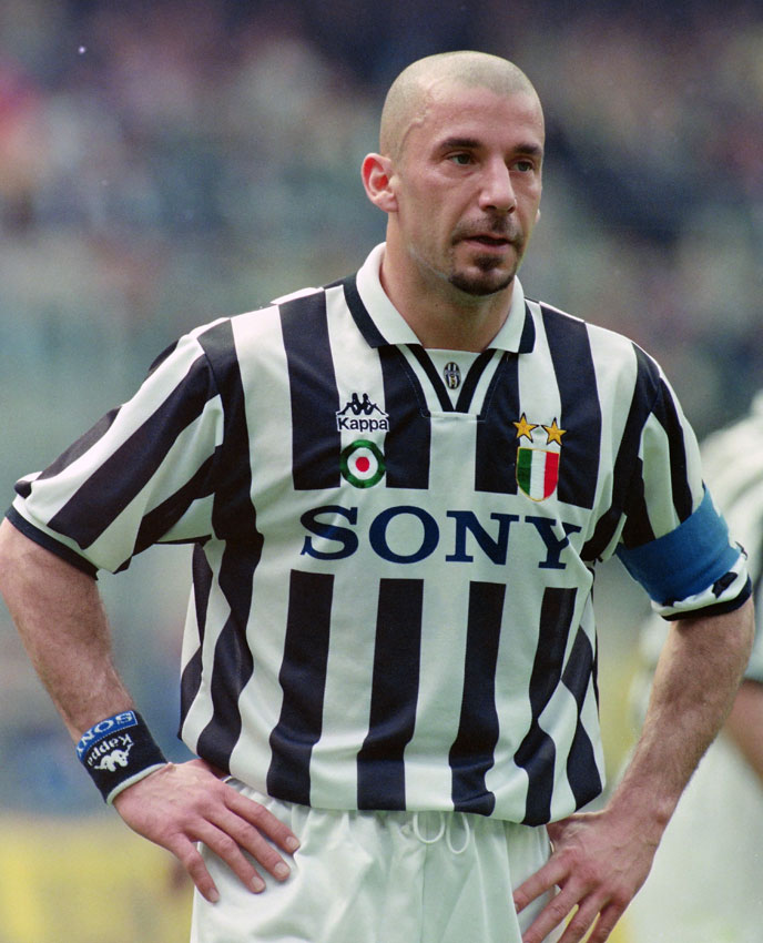 サッカー界の白黒ユニフォームといえば代表格はユヴェントス。この色はイングランドのノッツ・カウンティに由来する。95-96モデルはセリエAとコッパ・イタリアそれぞれの“優勝の証”を胸に付けた。