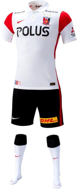 両肩・両脇からショーツにかけてはクラブカラーのレッドで彩り、エンブレムと同じレッド、ホワイト、ブラックのカラーコンビネーションを再現した。