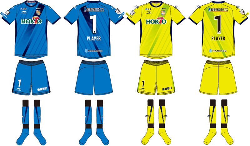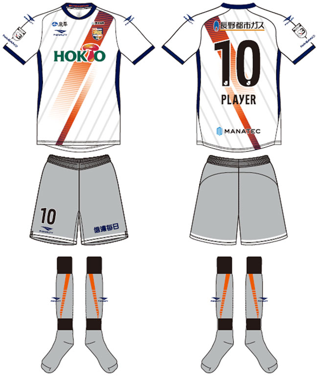 各部スポンサーは、胸が「HOKTO(ホクト)」、鎖骨右は「炭平」、鎖骨左は「栗田病院」、左袖は「炭平」、背中上は「長野都市ガス」、背中下は「MANATEC(マナテック)」、パンツは「信濃毎日新聞」となる。