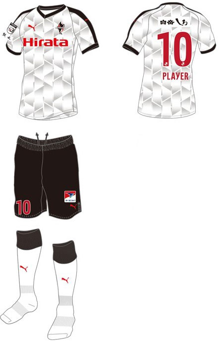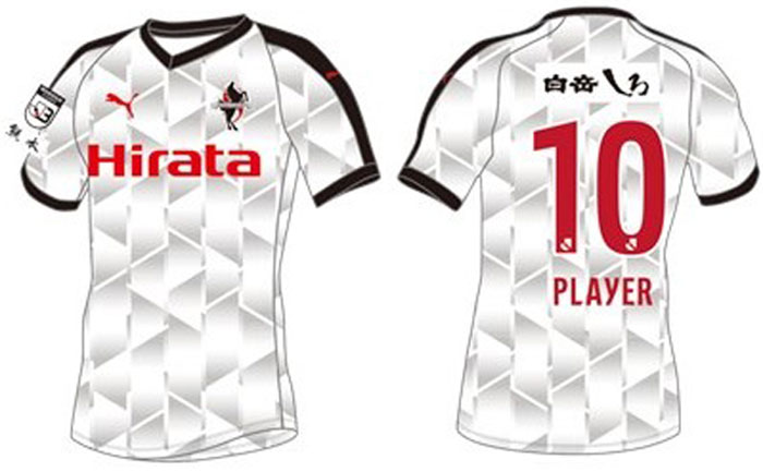 ホワイトとシルバーのアウェイは昨年と同じく、熊本の復興のシンボルとなっている熊本城の「石垣」をモチーフとしたもの。石垣のようにがっちりと組まれたデザインは、「チームが一丸となって戦う姿勢」や「J2復帰、その勝利のために戦う強い意志」をイメージいている。