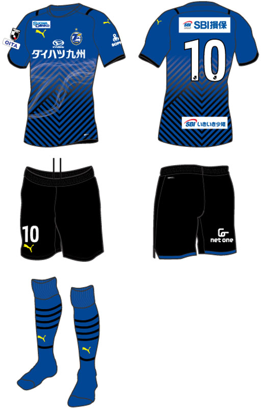 前面には、大分の名所である温泉を想起させる「湯気」で、エンブレムの“Tフレア”を中央部分に表現。またチーム名に由来するトリニティの三角形を幾何学模様で落とし込んでいる。ホームタウンの象徴的なカルチャーと伝統を盛り込んだデザインだ。