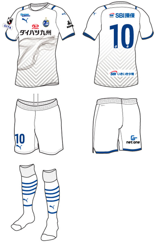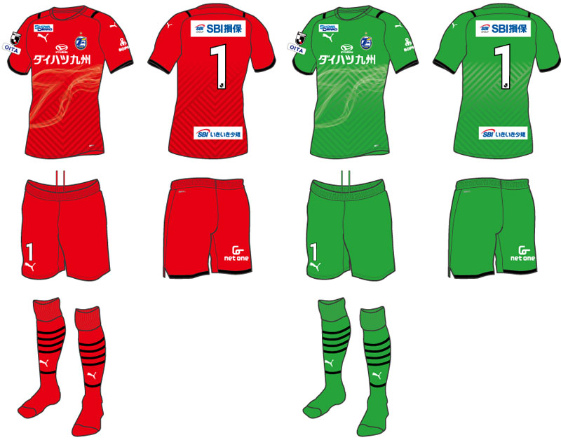 現時点での各部のスポンサーは、胸が「ダイハツ九州」、右鎖骨は「昭和電工」、背中上は「SBI損害保険」、背中下は「SBIいきいき少額短期保険」、左袖は「SOPH.」、パンツは「ネットワンシステムズ」となっている。