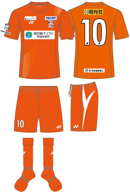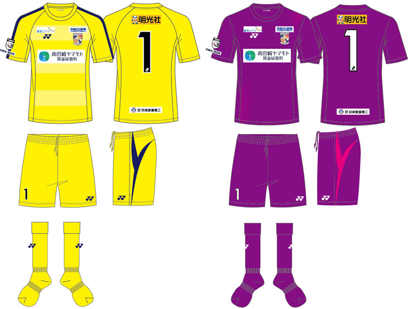 現時点での各部のスポンサーは、胸が「南宮崎ヤマモト腎泌尿器科」、背中上が「明光社」、背中下は「宮崎重量機工」、鎖骨右は「宮交シティ」、鎖骨左は「宮崎日日新聞」となっている。