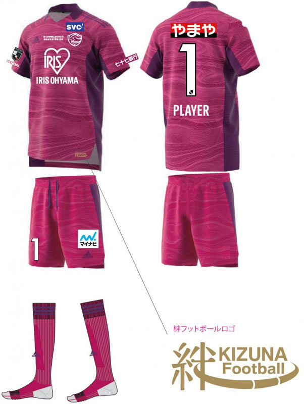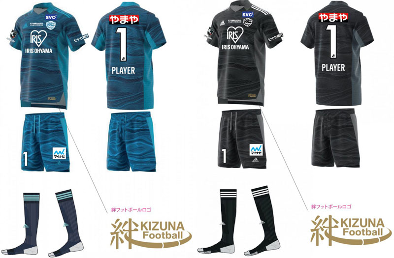 GKユニフォームは今シーズンも3色を展開。各キットにはクラブのメインスローガンである「絆フットボール」を前面左裾にプリントする。