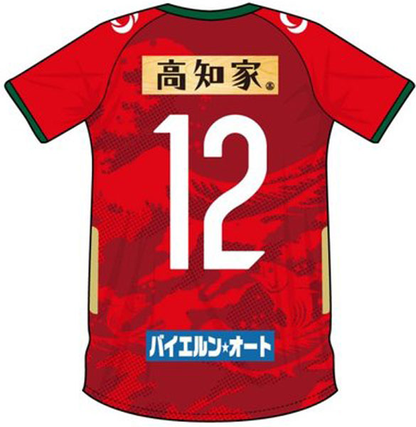 デザインは高知の象徴であり、クラブエンブレムにも描いている「カツオ」が大海原で荒波にもまれている姿をイメージ。クラブがJリーグへと昇っていく姿を「カツオ」に重ねている。
