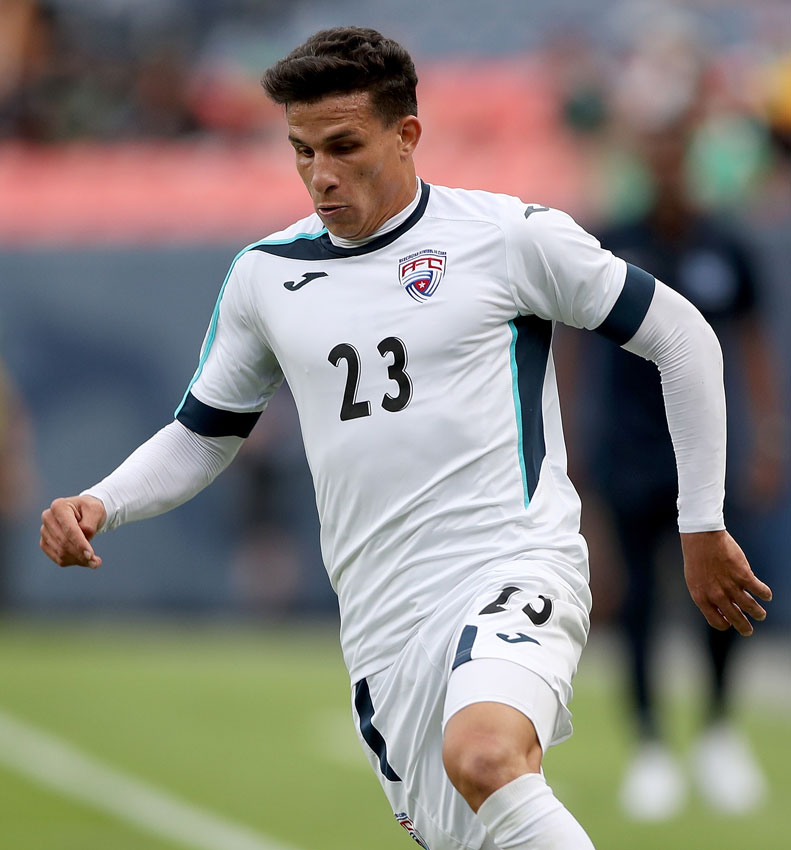 アシンメトリーデザインが印象的なアウェイユニフォームは、白を基調にブルーの差し色。ちなみにホームは赤を基調とする。2019年のCONCACAFゴールドカップなどで使用した。
