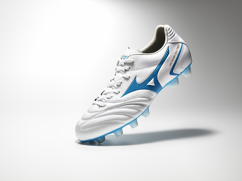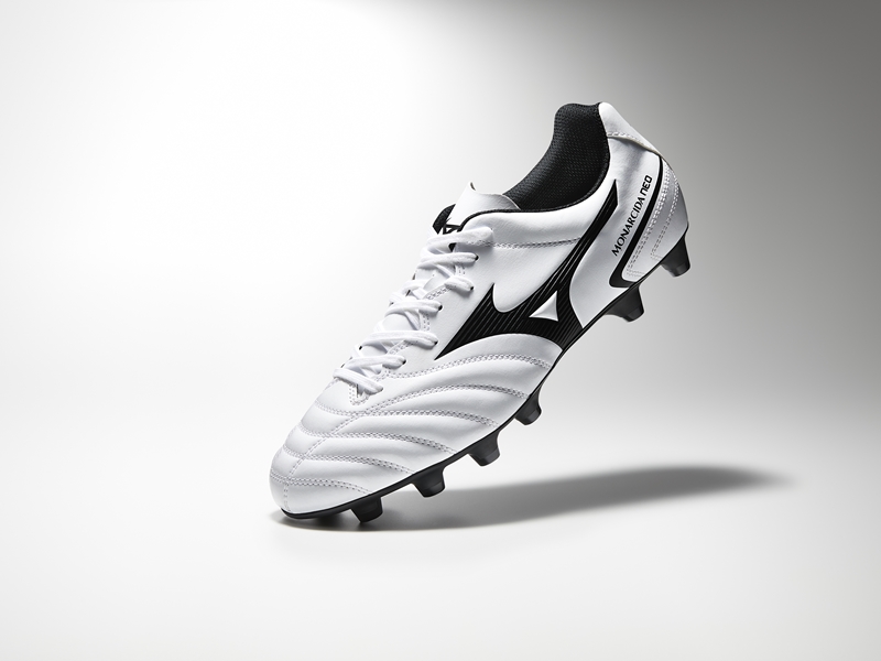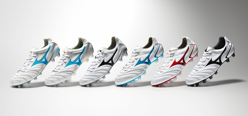 プレーヤーを全力でサポートするミズノ。『モナルシーダ ネオ 2』では、キッズモデルからトレーニング用、取り替え式シューズなど含め、計15モデルを展開する。