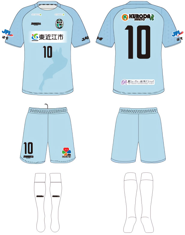 アウェイユニフォームはブルーをベースカラーに、滋賀県のシンボルである「琵琶湖」を透かしでプリント。