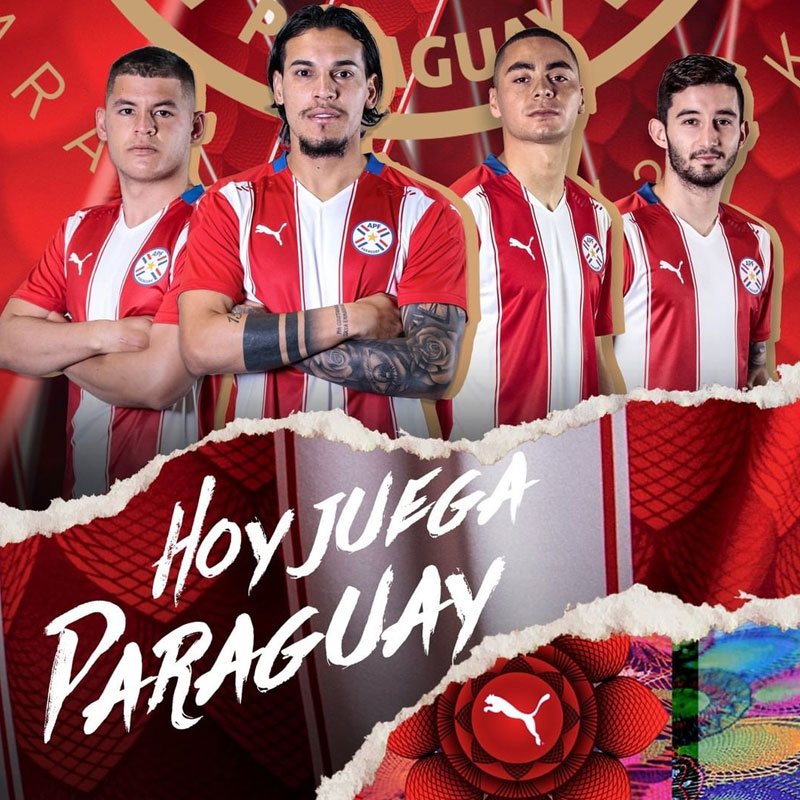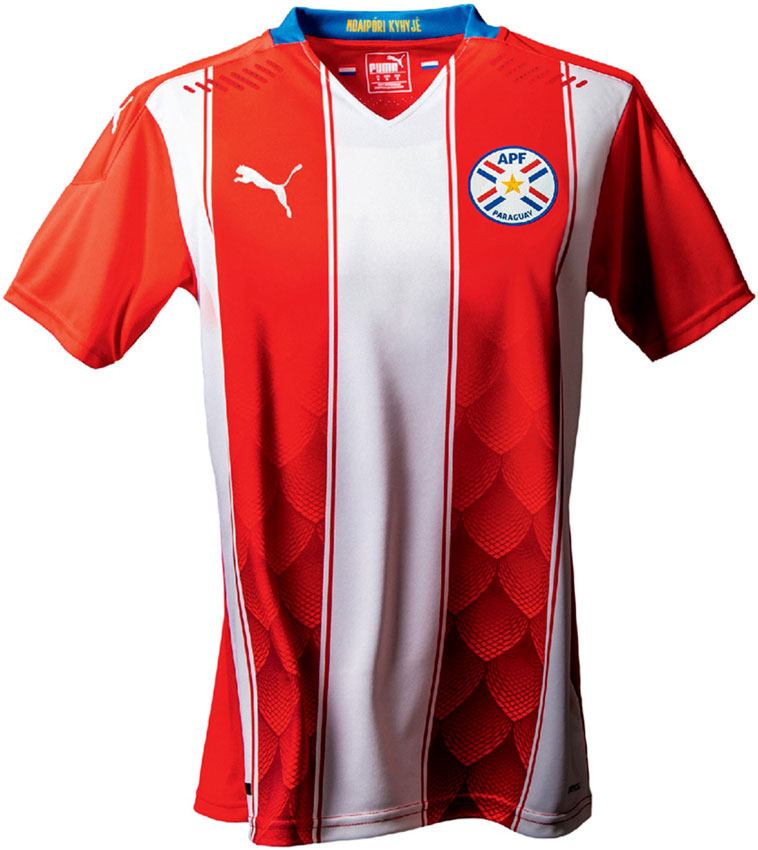 2006年以来となるPuma製のユニフォーム。花びらのようなグラフィックは、「Ñanduti(ニャンドゥティ)」というパラグアイの伝統的なレース編みに触発されたものだ。