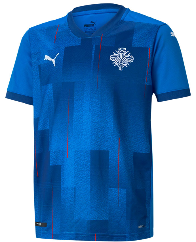 Pumaとサプライヤー契約した最初のユニフォームは、今年開催のEURO2020モデルとなる。これまで同様に「火と氷の国」の風土を落とし込んだデザインで、新エンブレムには4つのシンボル「雄牛、巨人、ハゲタカ、ドラゴン」を描く。