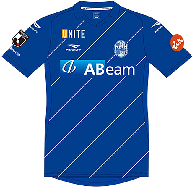 モンテディオ山形の象徴である青を基調としたデザイン。白いストライプを斜めに走らせ、これまでの山形のイメージとは異なり、新鮮な印象のユニフォームに仕上がっている。