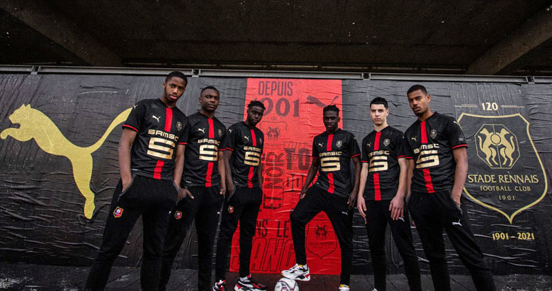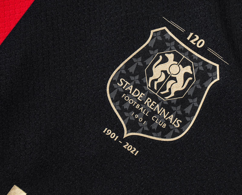 通常のエンブレムはレッドとブラックで半々のカラーだが、今回は120周年の特別仕様に。レンヌ市の旗にも使われているアーミン(動物の白テン)の紋様を散りばめる。