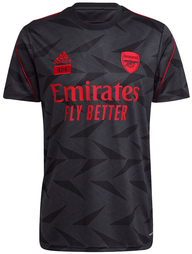 アーセナルとアメリカ・LA発のレーベル「424」とのコラボから生まれた吸湿性に優れたジャージ。選手が試合前のウォーマップ時に着用することもある。素材にはリサイクル・ポリエステルを51%使用。