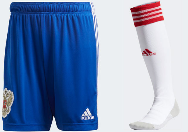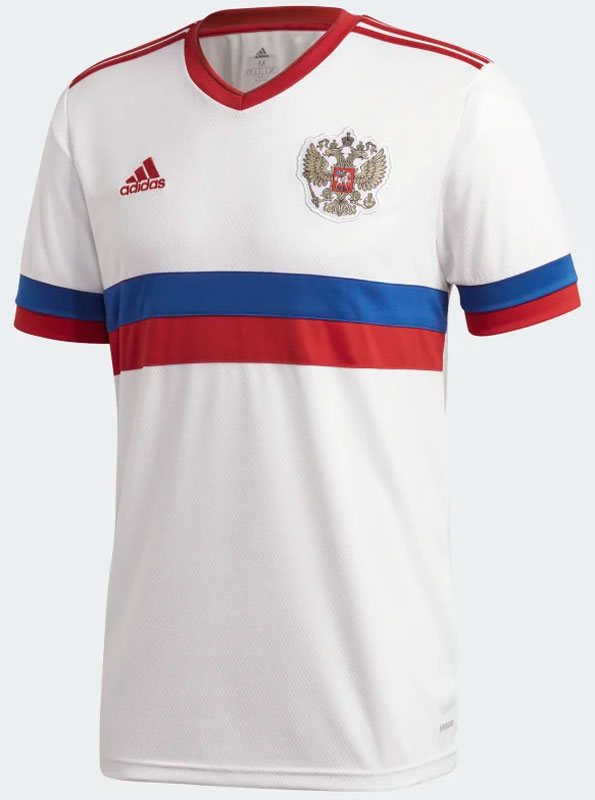 新アウェイユニフォームは、とてもシンプルなデザインを採用。ホワイトを基調に、ブルーとレッドのボーダーを胸と袖口にあしらう。この3色はロシア国旗カラーだ。