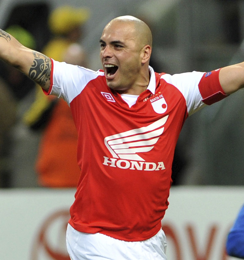 コロンビアのサンタ・フェは2013年と14年の2シーズンでHONDAロゴを掲出。13年はこのユニフォームを着て、南米最強を決める大会、コパ・リベルタドーレスを戦っている。