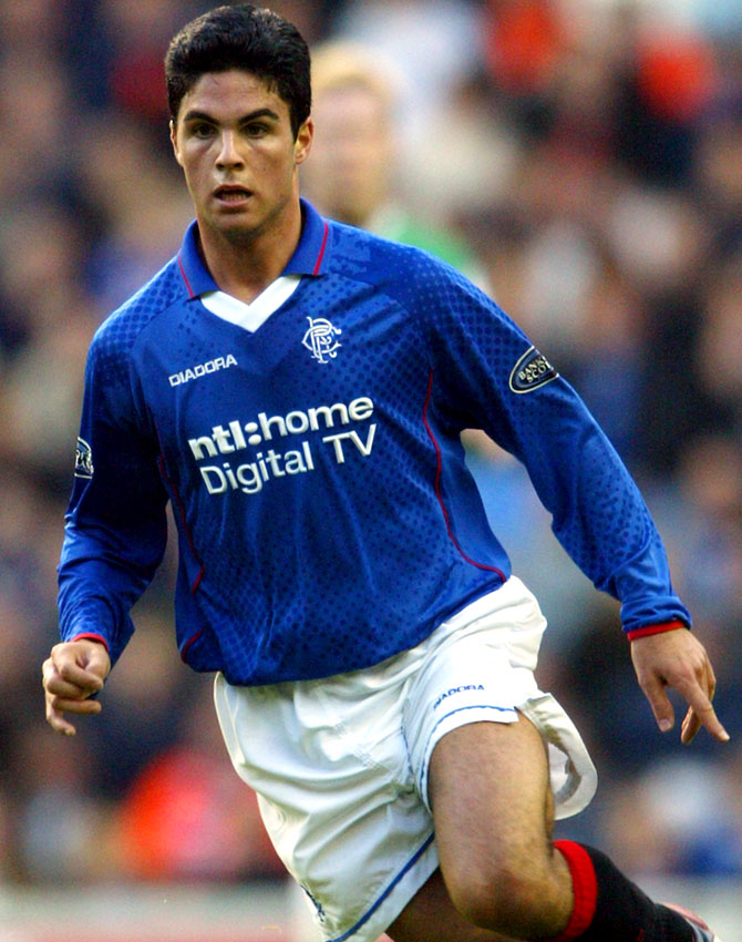 若き日のミケル・アルテタ(現アーセナル監督)も着たDiadora製のユニフォーム。この画像では見えにくいのだが、全体に打たれた細かな丸ドットの中に片足立ちのライオンを散りばめたデザインだった。