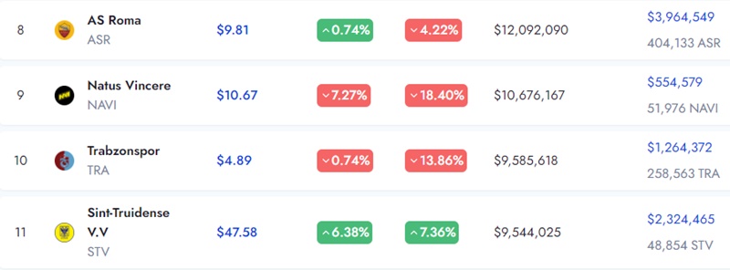 はい。実際に STVVはSocios.comに参画しているクラブの中では市の人口規模やファンベースは一番小さい部類ですが、それでもマーケットキャップのトークンの時価総額を見てみると、(トルコの)トラブゾンスポルや(イタリアの)AS ローマのようなビッグクラブに肉薄しているという部分もあります。