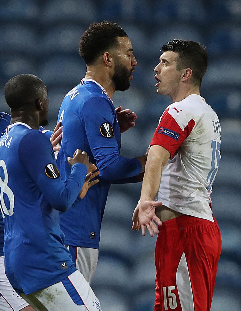 レンジャースMFグレン・カマラが、スラヴィア・プラハのチェコ代表DFオンドレイ・クデラから「F*****g Monkey(ク○猿)」と呼ばれたとして激昂し、激しい衝突が発生した。