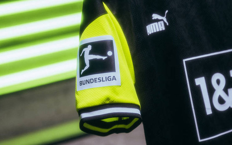 左袖のブンデスリーガバッジは、キットデザインに合わせてブラックに変更。これにより一段とスタイリッシュな印象を受ける。