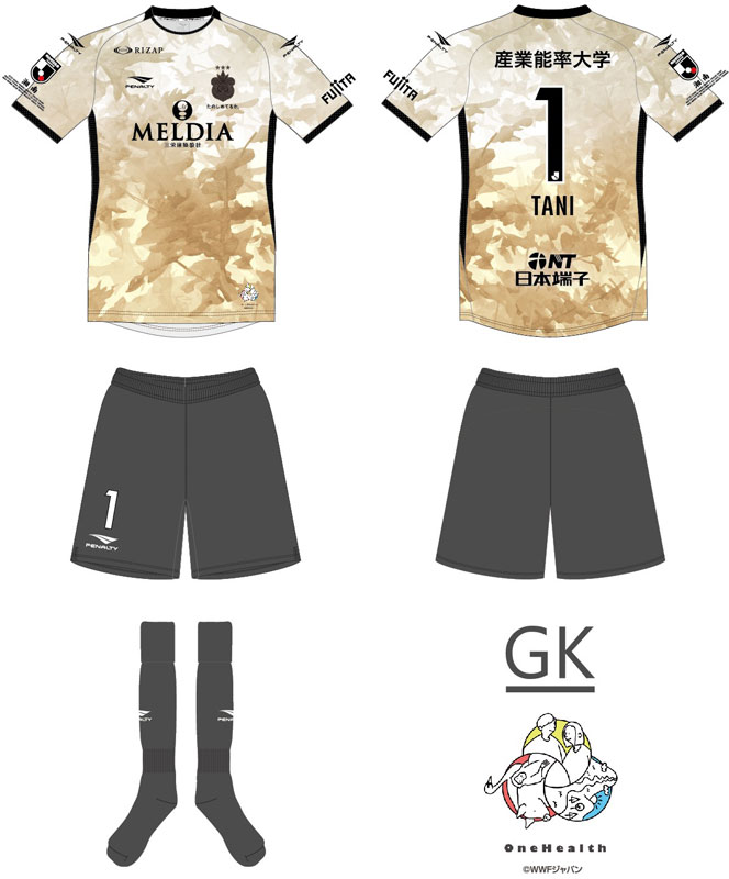 GKユニフォームはブラウン系を基調としたデザインで、こちらも大地を感じさせるアースカラー。グラフィックはFP用と共通で使用する。