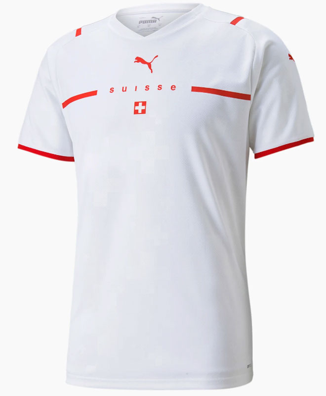 新アウェイユニフォームはイタリア代表などと同じで、Pumaのプラットフォーム“Only See Great”の一部としてリリース。ホワイトを基調にレッドのラインを走らせるシンプルなデザインだ。胸中央にはフランス語で国名“Suisse”をレタリングする。