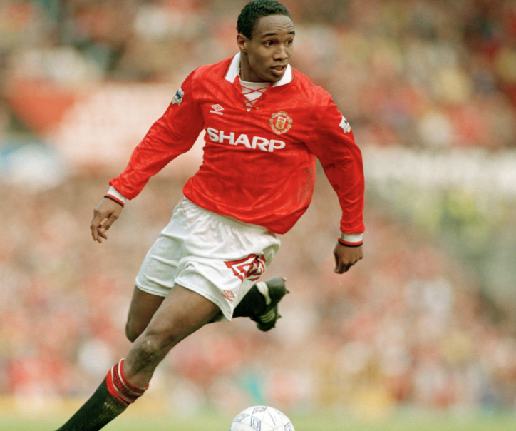 1975年以来となるUmbro製のユニでもあった。前身である1892年当時のニュートン・ヒースFCに敬意を払った編上げの襟元が特徴的。写真下は、ユナイテッドとリヴァプールでプレーしたポール・インス。