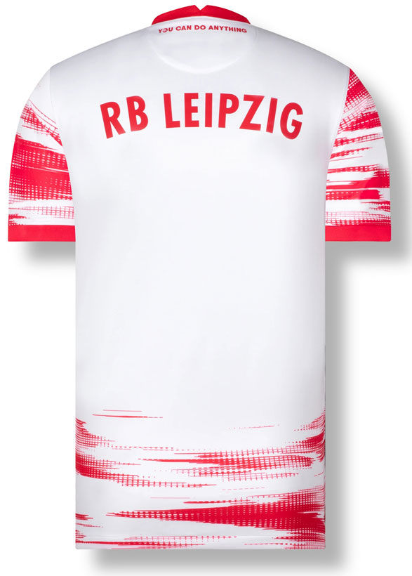 背面首元にはクラブのモットー“You Can Do Anything”をレタリング。今回はイエローをほとんど使わず、ライプツィヒの伝統的なレッドとホワイトの組み合わせとなった。