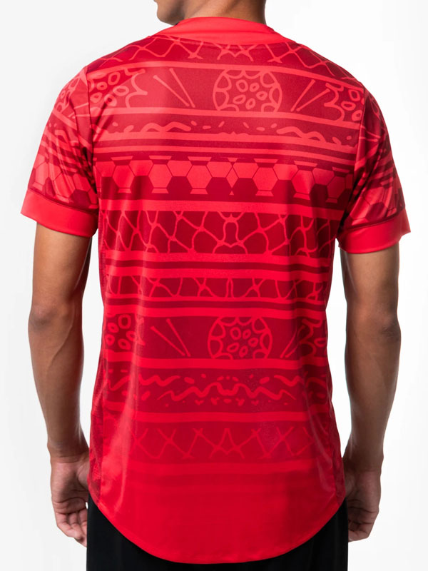 ホームユニフォームは、伝統的に使うレッドとブラックの組み合せ。民族模様的なグラフィックがマニア心をくすぐるデザインだ。