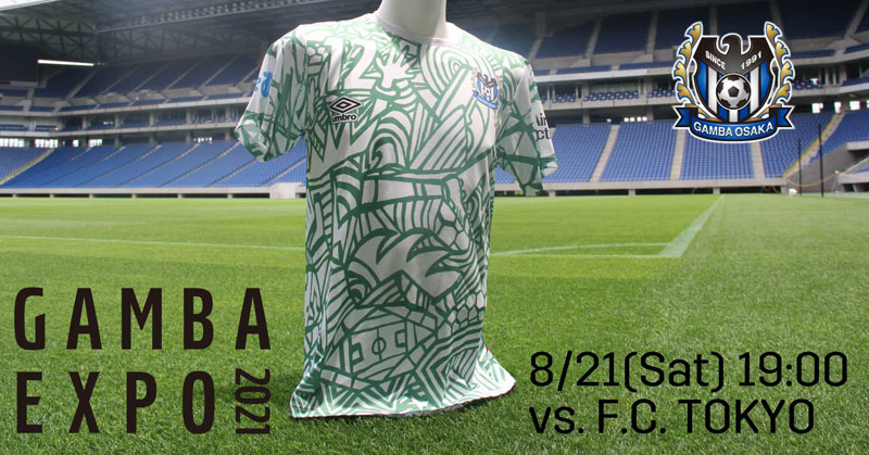 『GAMBA EXPO 2021』では、グリーンを基調とした記念ユニフォームシャツ付きのチケットを販売する。“青竹色“を基調としたグリーンには、「健康、平和、安心、調和」などの意味合いがあり、新型コロナウイルスのいち早い終息と、世界の人々の健康への願いを込めている。