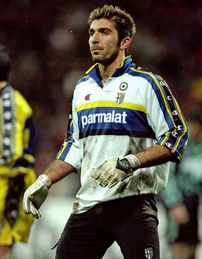 2種類のGKキットを用意されていながらも、FP用ユニフォームを着てしまうブッフォン。ホワイトを基調としたこのキットは、当時のFP用アウェイユニフォームだった。