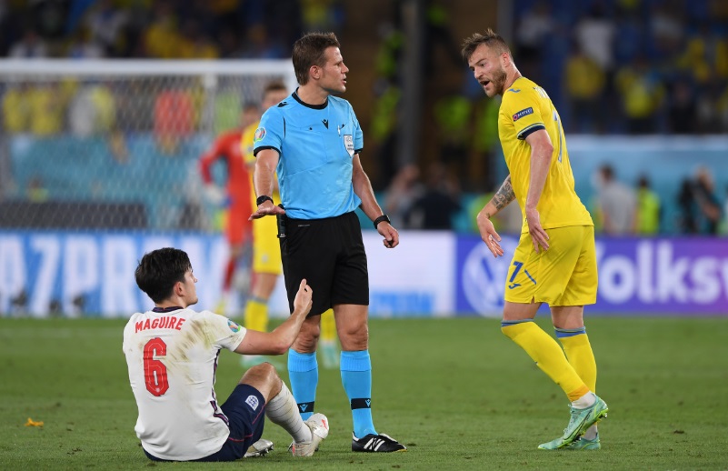 ピッチに座り込んだマグワイアは立ち上がるためにウクライナFWロマン・ヤレムチュクに手を差し伸べた。ヤレムチュクがその手をとろうとした瞬間、ヤルモレンコが介入!マグワイアの手をとることを許さなかったのだ。