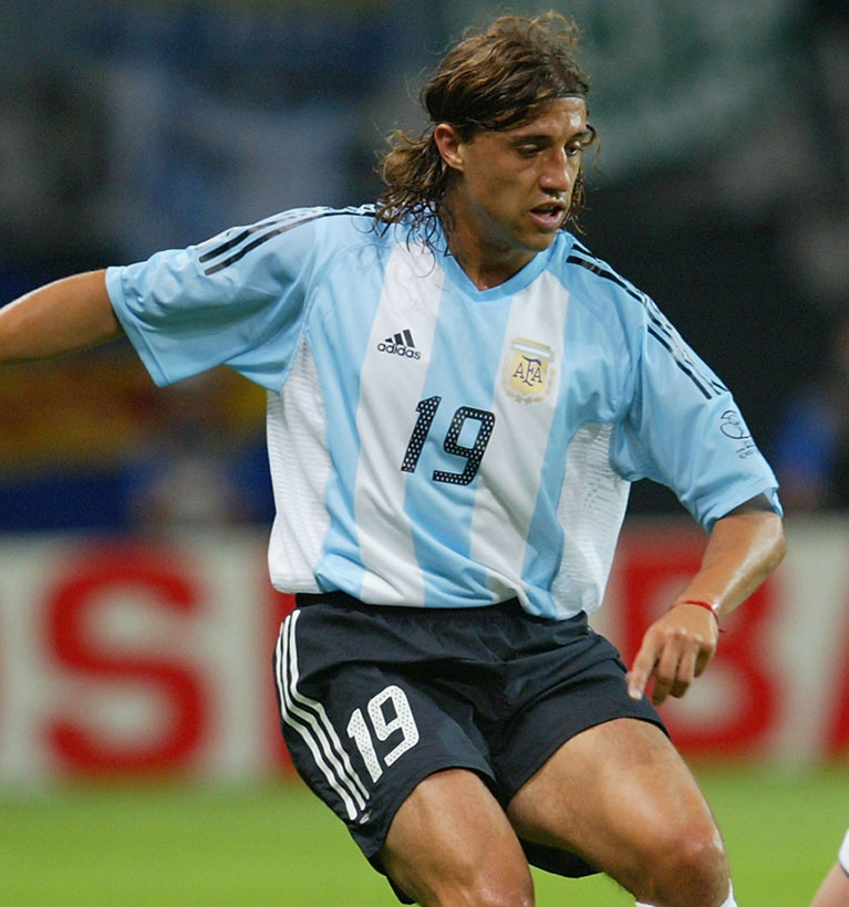 2002年日韓W杯に向けて投入したユニフォーム。ブラックでもホワイトでもない、ブルーのVネックが印象に残る。メッシュを入れた背・胸番号も当時の特徴だった。