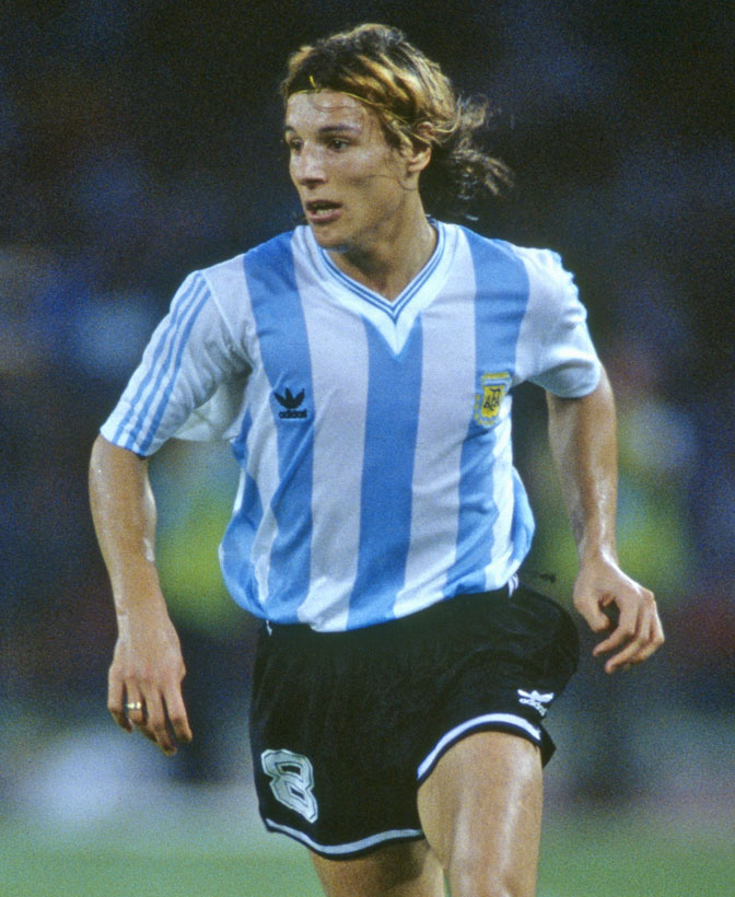 準優勝となった1990年イタリアW杯などで使用したユニフォーム。全体的にシンプルなデザインで、ブルーのストライプが爽やかな印象。