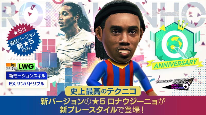 ◇『プロサッカークラブをつくろう! ロード・トゥ・ワールド』スペイン強豪クラブのレジェンド「ロナウジーニョ」「ガイスカ・メンディエタ」や、現役スター選手が多数登場!“Q anniversary サマースーパースターカーニバル”開催!
