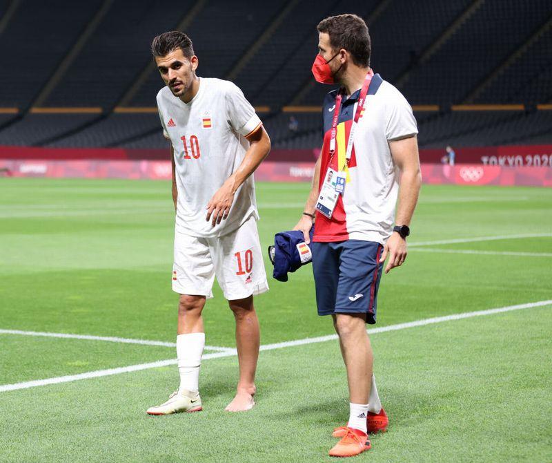 ボコッと腫れている左足首…。メディアによればダニ・セバージョスの東京五輪はもうこれで終わってしまったという予測も。