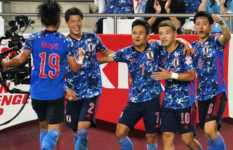 主要メンバー:吉田麻也(OA)、酒井宏樹(OA)、遠藤航(OA)、大迫敬介、板倉滉、冨安健洋、三笘薫、堂安律、久保建英(森保 一監督)