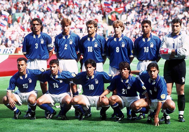 EURO96本大会に出場したイタリア。パオロ・マルディーニ、デメトリオ・アルベルティーニ、アレッサンドロ・デル・ピエロ、ピエルルイジ・カジラギといった選手が選ばれている。